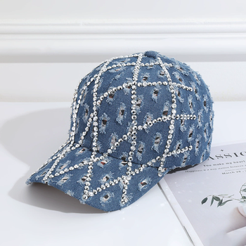 Frauen Shiny Strass Distressed Denim Baseball Cap Sparkle Ripped Casual Jean Sonnenhut